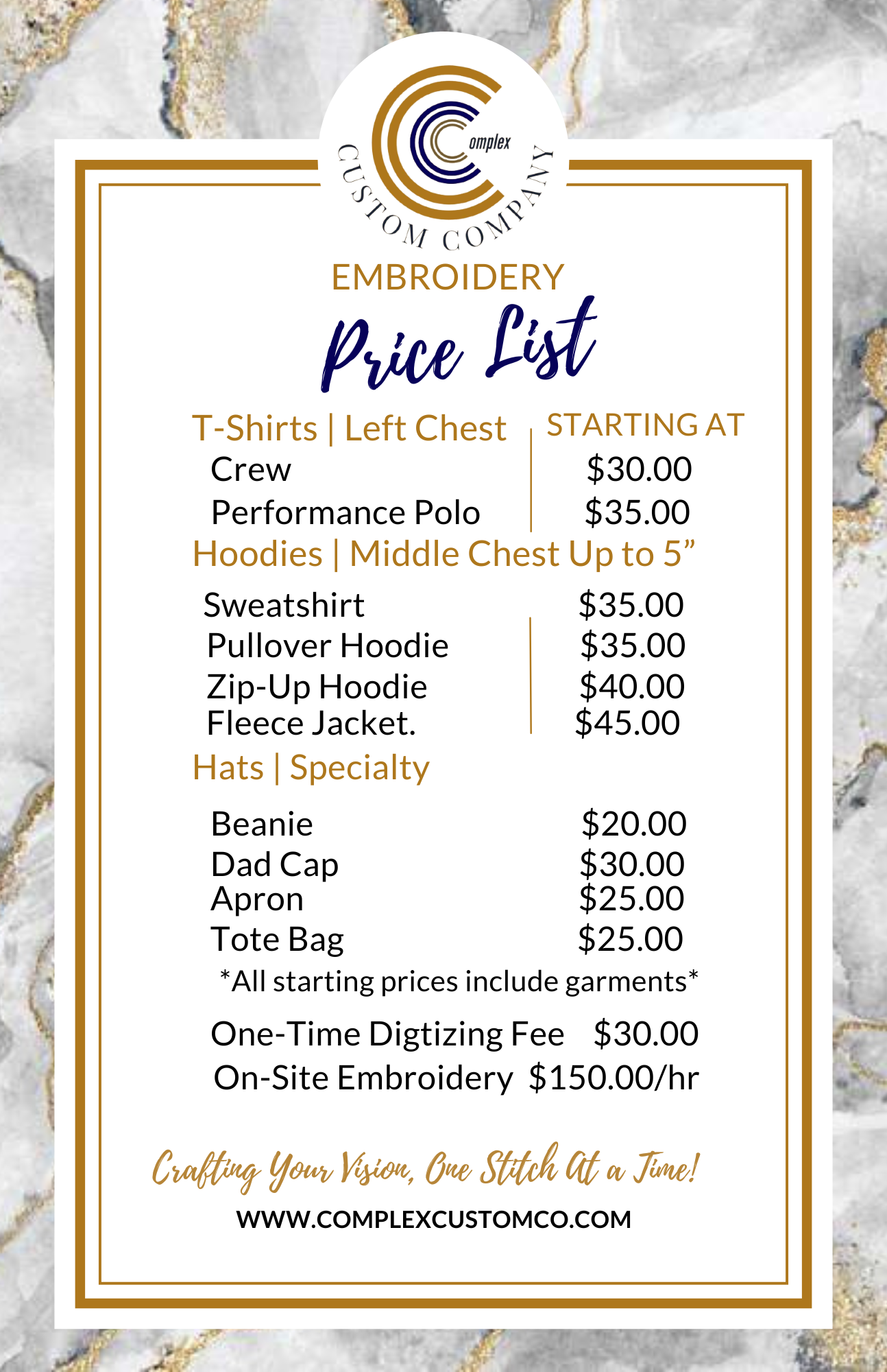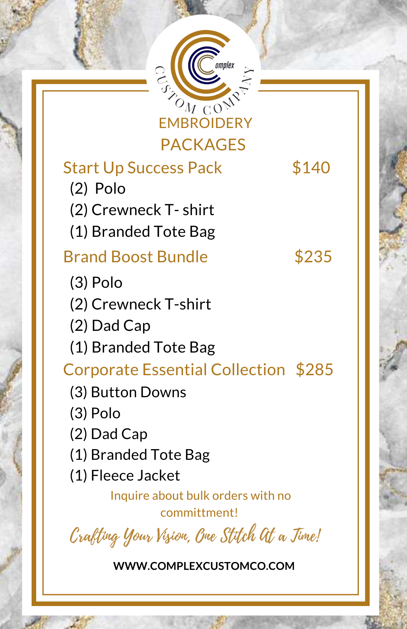 Thank you for your interest in working with Complex Custom Company! Beyond the Logo, We See You! Let’s Stitch Your Story Today!